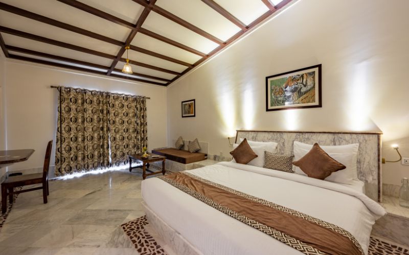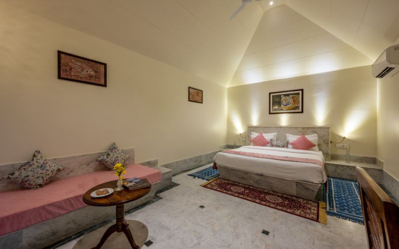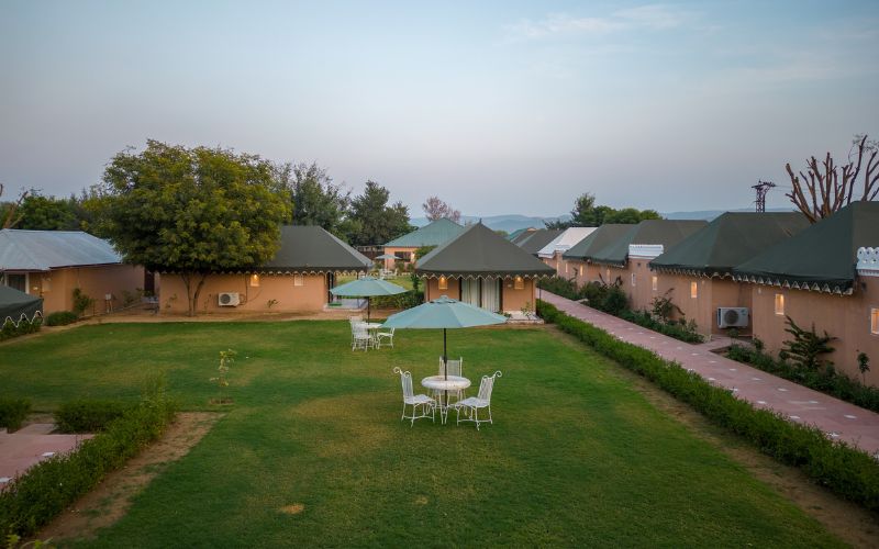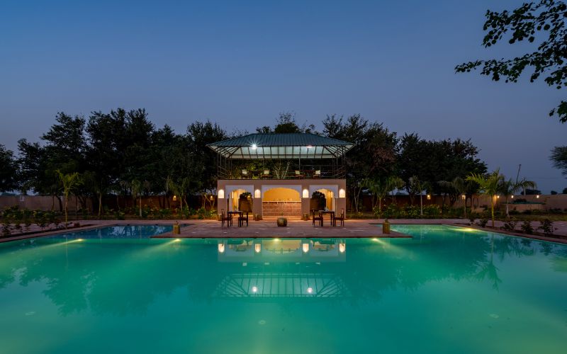 Aangan Resort is spread entirely across the ground level, featuring single, single independent style Pool Villas and Deluxe Cottages that offer exceptional privacy, openness, and a true sense of space. Unlike typical multi-story resorts, this thoughtfully planned layout creates a light, airy, and peaceful environment where each unit stands on its own. The absence of multi-story structures also enhances the experience around the beautiful swimming pool and restaurant, as uninterrupted views and open skies create a relaxed and harmonious environment.