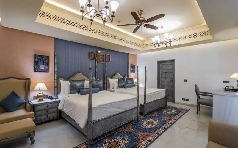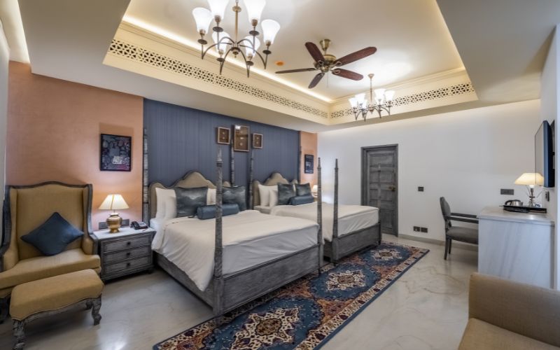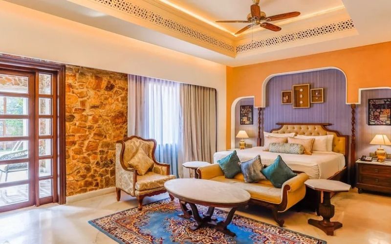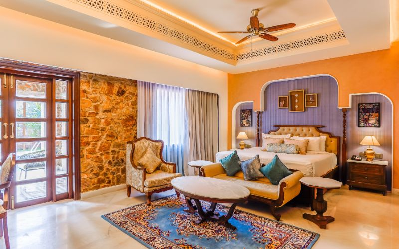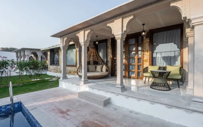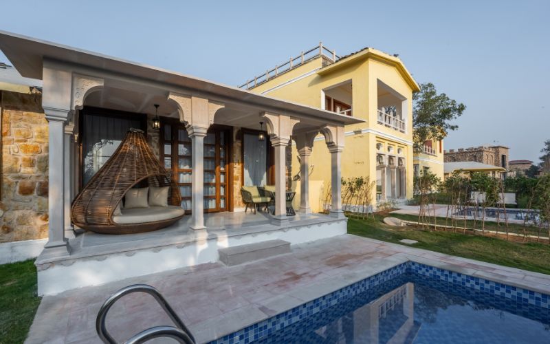 The resort offers One-Bedroom and Two-Bedroom Private Pool Villas, designed for intimacy, privacy, and relaxation. The one-bedroom villa is perfect for couples seeking a peaceful getaway, while the two-bedroom villa caters to families or small groups with spacious living areas and private pools. Every villa seamlessly blends indoor luxury with outdoor serenity, making Juna Mahal an ideal base for unwinding, enjoying personalized hospitality, and exploring the nearby Ranthambore National Park.