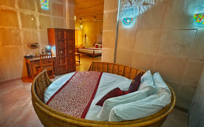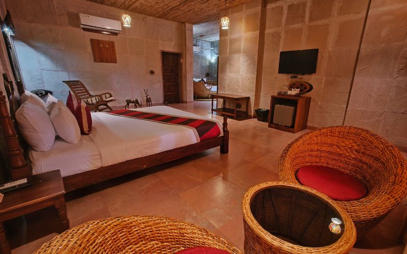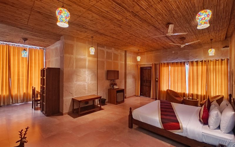 The resort’s accommodations are thoughtfully designed to combine heritage charm with contemporary comfort. Its spacious Rooms provide ample living space, high ceilings, and large windows that allow natural light to illuminate the refined interiors. Each room is tastefully furnished with comfortable beds, traditional décor elements, and modern amenities, creating a perfect balance of luxury and homely warmth for families and couples alike.