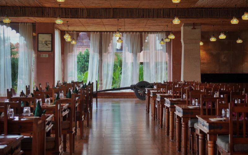 For guests seeking privacy and an extra touch of regal indulgence, the independent Maharani Cottages offer a truly immersive experience. Set amidst landscaped gardens, these standalone cottages feature private verandahs, elegant interiors, and secluded spaces where travellers can relax in serenity. The Maharani Cottages are designed to evoke the feeling of a queen’s residence, offering a blend of exclusivity, comfort, and style, with modern amenities subtly integrated into traditional architectural design.